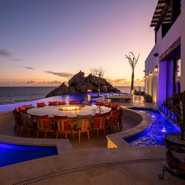 La Datcha Cabo San Lucas is a palatial, 20,000 square-foot beachfront villa that seamlessly blends vibrant Mexican-American style with lavish Russian touches, all set in the exclusive Pedregal community overlooking the stunning Pacific Ocean. Imagine waking each morning to the sound of waves, indulging in gourmet meals crafted by your private chef, then unwinding with friends in an infinity-edge pool as the sun sinks into the sea—whale watching from your terrace in season. Each of the villa’s ten spectacular suites offers breathtaking ocean views, elegant décor, en-suite baths, and private outdoor spaces, guaranteeing both privacy and comfort for every guest. Exceptional amenities abound, including a world-class spa, a state-of-the-art beachfront gym, entertainment rooms, fire-lit outdoor lounges, and one of the world’s most exclusive wine cellars. With attentive staff providing butler, chauffeur, housekeeping, and concierge services, every detail is handled—leaving you free to experience pure relaxation and luxury in a masterpiece of global design where the beauty of Cabo, artful elegance, and ultimate comfort unite.
